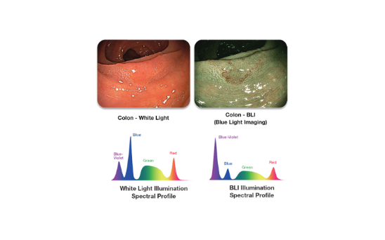 La tecnología LED Multi-light de Fujifilm ofrece capacidades avanzadas de Imagenología con Luz Azul (BLI), que mejora la visualización de los microvasos y facilita la caracterización de lesiones gastrointestinales al enfatizar la luz de onda corta. Esta tecnología produce imágenes de alto contraste combinando luz de onda corta con luz blanca, lo que mejora la visibilidad de las estructuras mucosas y los microvasos. La BLI es eficaz para caracterizar y diferenciar pólipos neoplásicos y puede predecir diagnósticos histológicos, distinguiendo entre pólipos neoplásicos y no neoplásicos. La BLI es superior a la Luz Blanca HD para la predicción histológica en tiempo real en pólipos menores de 1 cm (Rondonotti et al., 2019) y permite la visualización activa del flujo sanguíneo en vistas ampliadas. Para más detalles, consulte información adicional sobre BLI y estudios clínicos aquí.